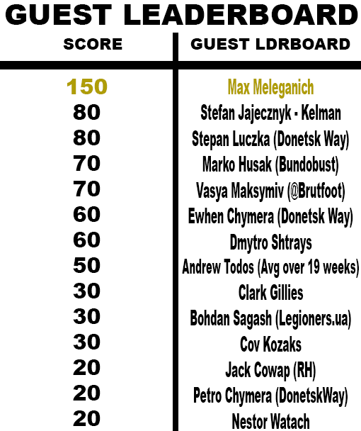 Creativity may be lacking during this half of the season, bar the obvious contributions of Maryan Shved. Karpaty look to be at the start of a transition period. Fingers crossed that it doesn’t cause a return to the serious instability that they have encountered over the past few seasons. The real question will be whether Fabri will b able to hold onto his job until the end of the season, with Karpaty being well known for changing managers like the weather!